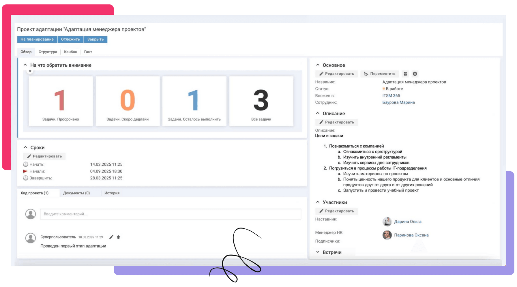 Например, система ITSM 365 так автоматизирует работу HR-отдела: