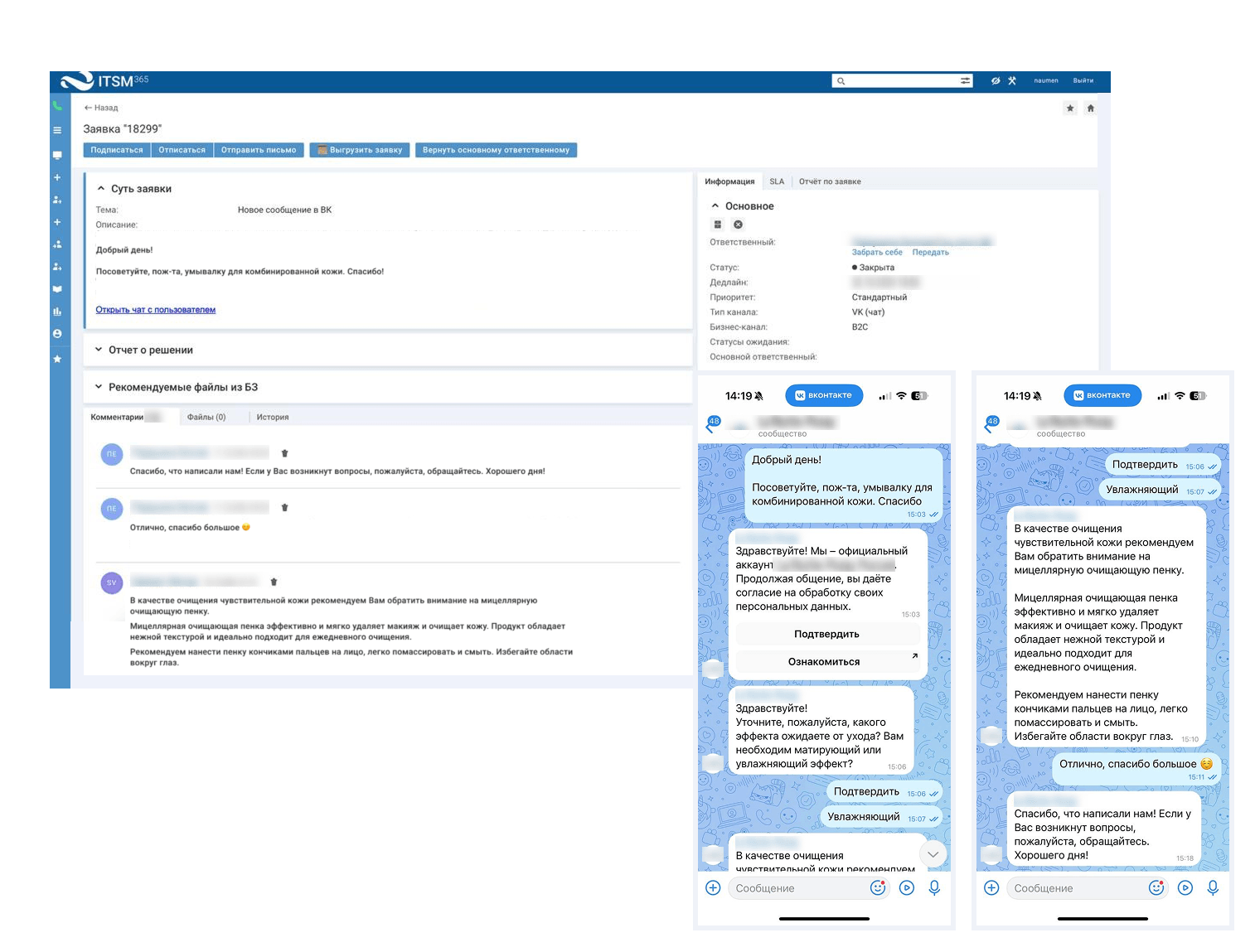 Механику выстроили так, чтобы она была удобной и для клиента в VK, и для специалиста поддержки в ITSM 365.