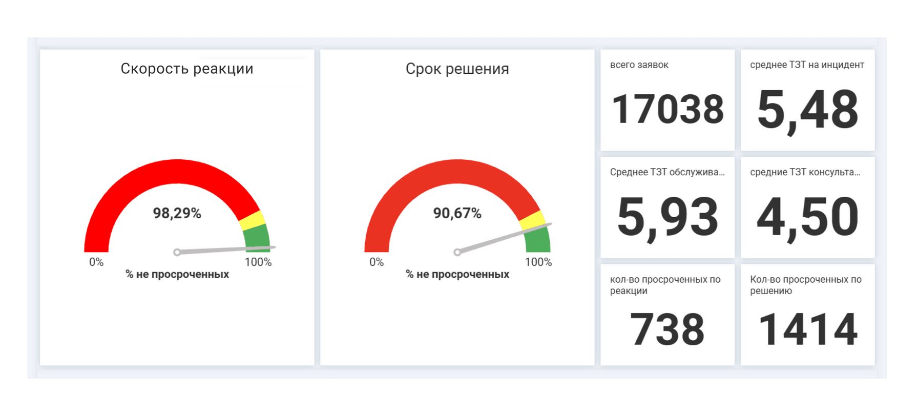 - Какая доля заявок не укладывается в установленные сроки реакции и решения.