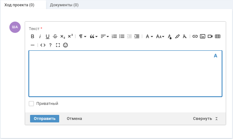 Добавление комментариев с описанием текущей ситуации по проекту доступно всем участникам проекта, кроме подписчиков.