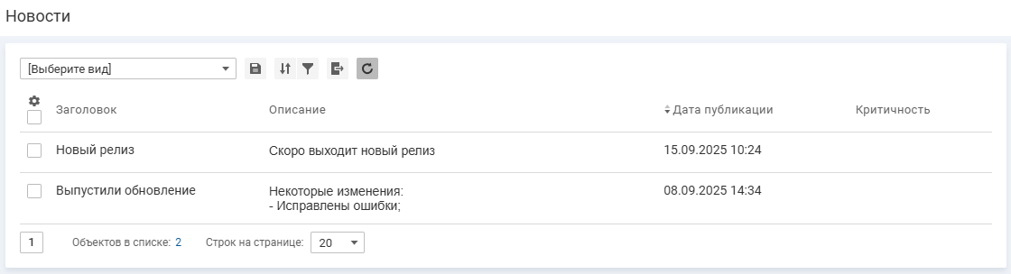 Новость перейдет в статус "Неактуальна" и будет отображаться в списке новостей только для Администратора и пользователей с правами "Менеджер новостей".