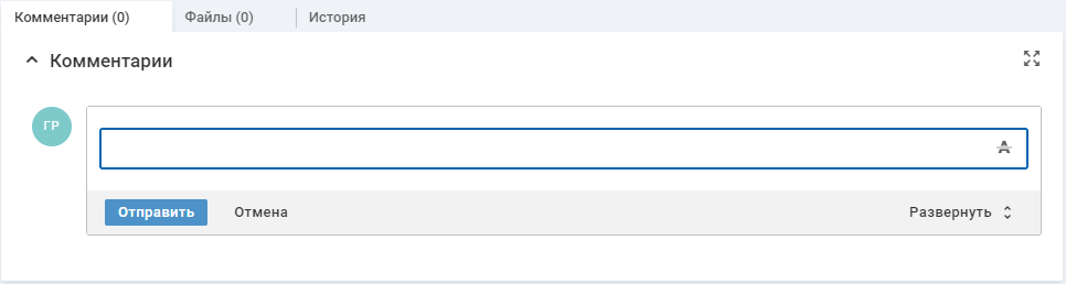 Для ввода комментария можно использовать стандартную форму добавления комментария, нажав "Развернуть" на панели кнопок справа.