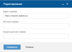 - Секретный ключ для стандартизации: укажите ключ, полученный в личном кабинете dadata.ru