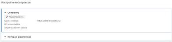 Для настройки интеграции с сервисом dadata.ru необходимо создать учетную запись на сервисе и получить настройки для интеграции по API: