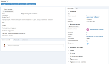 Если в заявке указан контактное лицо-сотрудник, то для выбора доступны активы, находящиеся в пользовании контактного лица-сотрудника и в пользовании его отдела / компании/ объекта обслуживания.
