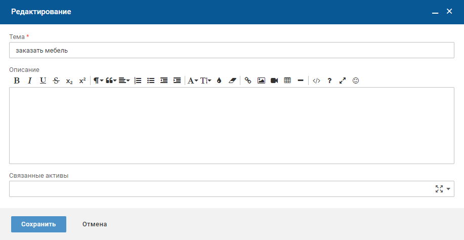 Любой актив в той или иной степени может быть связан с заявкой, проблемой или изменением.