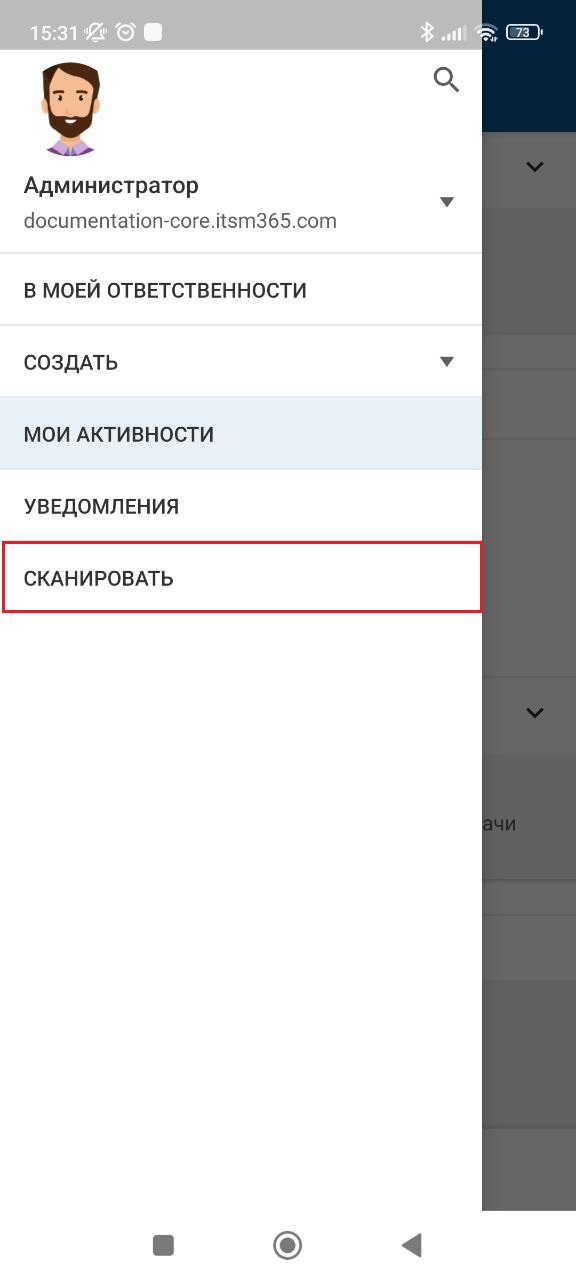 В меню нажмите кнопку "Сканировать" , наведите камеру вашего телефона на сгенерированный QR-код и перейдите по ссылке на карточку актива в мобильном приложении.