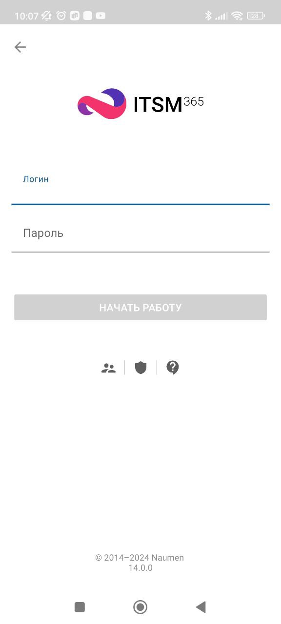 Перейдите в мобильное приложение и авторизуйтесь на вашем стенде ITSM 365.