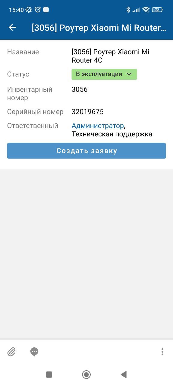Если ни одно из условий не соблюдается, то при сканировании QR-кода пользователь перейдет на карточку актива в мобильном приложении, на которой кнопка "Создать заявку" не отображается.
