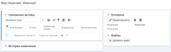 Чтобы добавить новый вид лицензии, в списке видов лицензии нажмите кнопку "+ Добавить". На форме добавления объекта введите название и нажмите кнопку "Сохранить".