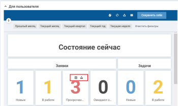 На каждом дашборде отображаются несколько виджетов (элементов дашборда). Настраивать общие дашборды может пользователь с правами "Мастер дашбордов", подробнее о настройке дашбордов.