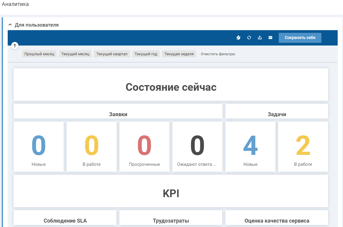 Дашборд содержит метрики по выполнению заявок в личной ответственности. Дашборд доступен любому лицензированному пользователю.