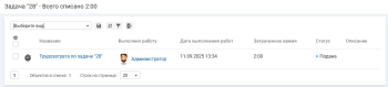 - "Затраченное время" (ЧЧ:ММ) — отображается количество времени, потраченное на выполнение работы;