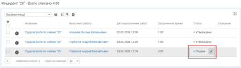 Утверждение или отклонение в карточке трудозатраты