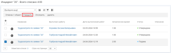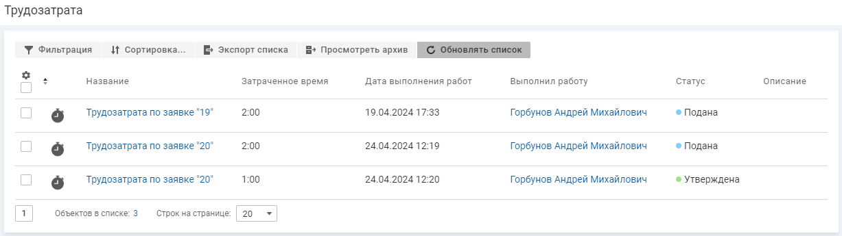 Просмотр списка трудозатрат