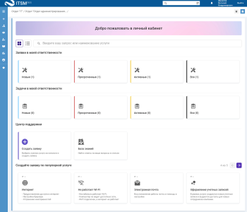 - Блок "Создайте заявку по популярной услуге" содержит плашки популярных услуг для регистрации заявки. Блок отображаются, если в системе указаны популярные услуги, и пользователь получает эти услуги.