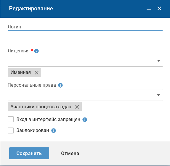 - Лицензия — тип лицензии для пользователя, подробнее;