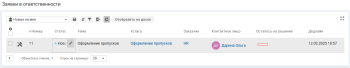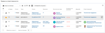 В списке заявок наведите курсор на ячейку "Ответственный" и нажмите иконку