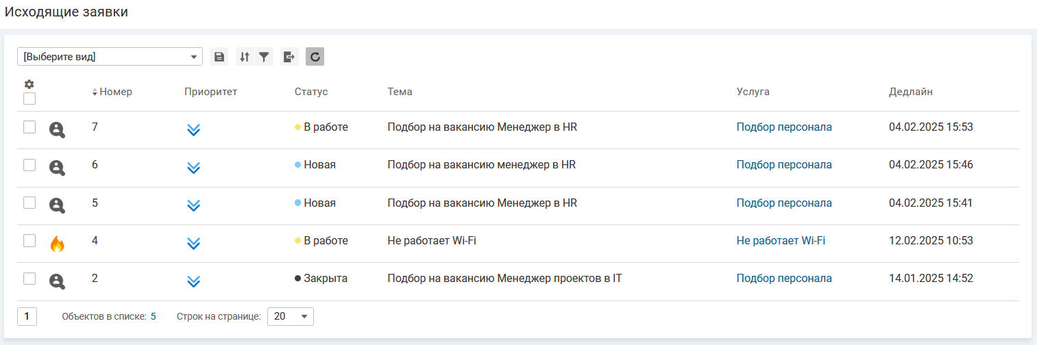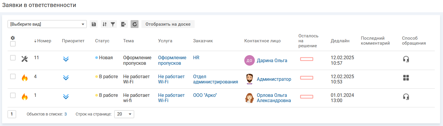 Для просмотра доступны следующие виды списка заявок: