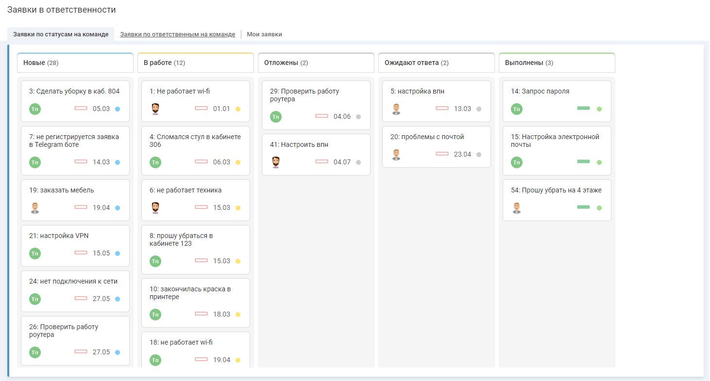 - "Просроченные" — заявки с просроченным временем на решение.