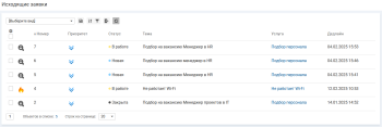 - "Новые на мне" — в списке отображаются заявки в статусе "Новая", находящиеся в персональной ответственности специалиста.