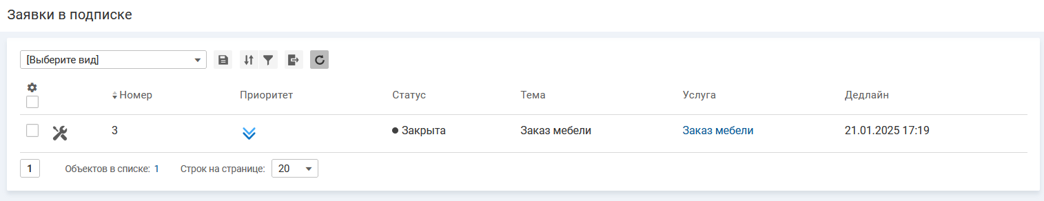 Список заявок в подписке