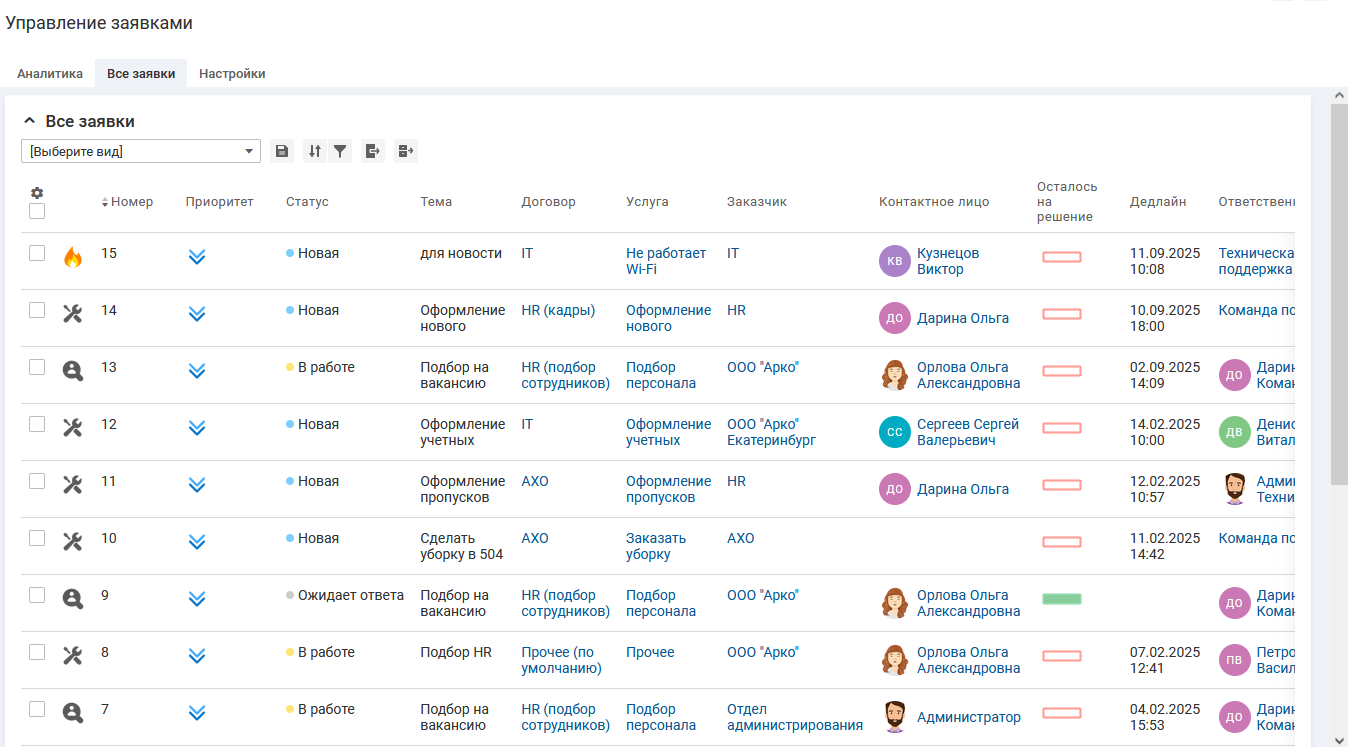 Управление заявками доступно Администратору и пользователям с правами "Менеджер процесса заявок".