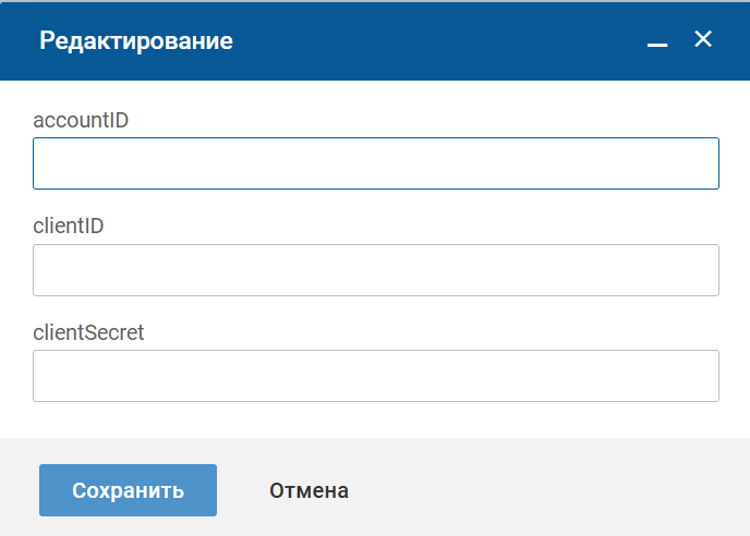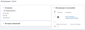 На странице интеграции с Zoom в блоке "Основное" нажмите кнопку "Редактировать", заполните поля на форме и сохраните изменения.