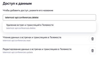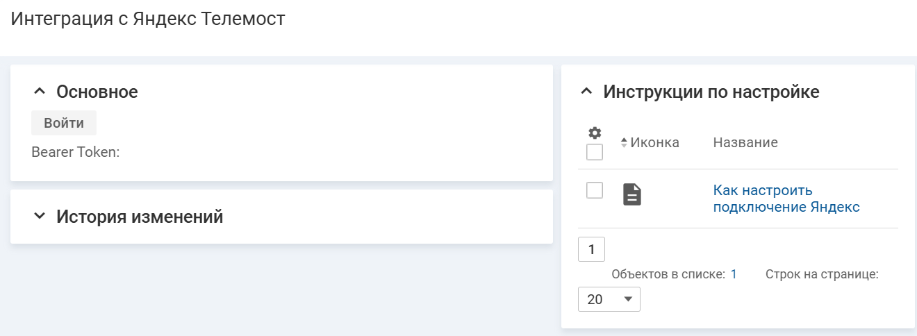 Настройка интеграции с Яндекс Телемост выполняется администратором.