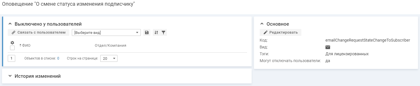 - блок "Выключено у пользователей" — содержит список пользователей, у которых оповещение отключено.