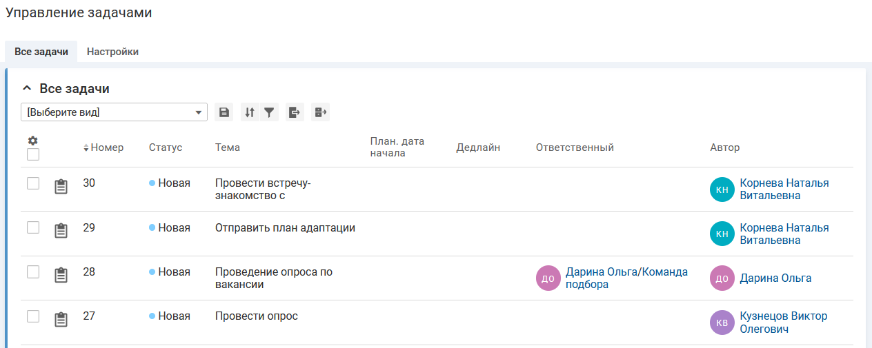 Откроется вкладка "Все задачи".