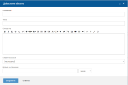 Возможные значения: "Добавление комментария к объекту", "Прикрепление файла к объекту", "Добавление объекта", "Изменение объекта" и "Смена статуса".