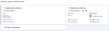 - "Содержимое шаблона" — отображается текст шаблона задач.