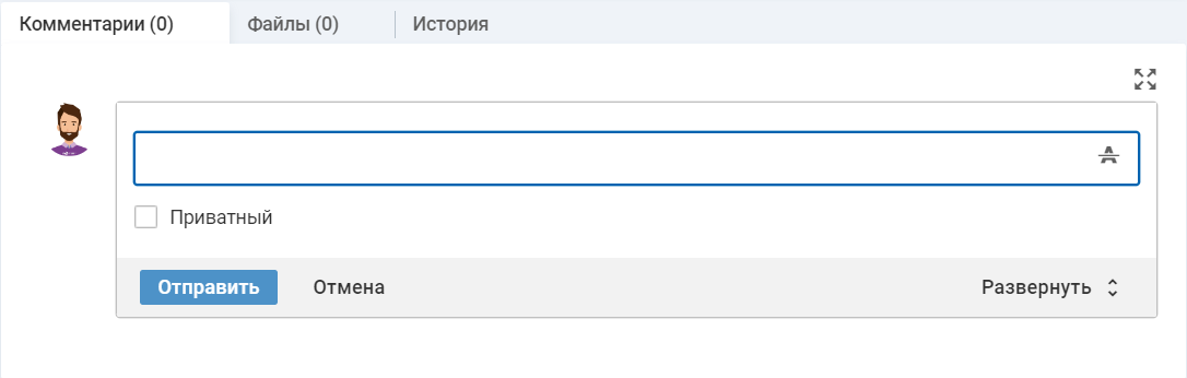 Для ввода комментария можно использовать стандартную форму добавления комментария, нажав "Развернуть" на панели кнопок справа.