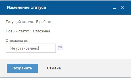 На форме изменения статуса выберите дату, до которой откладывается задача, в поле "Отложена до" и нажмите кнопку "Сохранить".