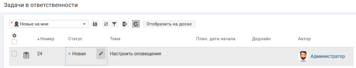 В списке задач "Новые на мне"