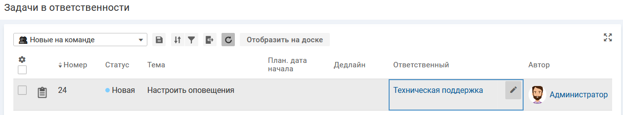 Если задач в ответственности специалиста нет, то он может самостоятельно взять на себя решение задачи из списка задач в ответственности своей команды (вид "Новые на команде"). В этом случае следует перевести задачу в персональную ответственность, чтобы избежать ситуации, когда одной задачей одновременно будут заниматься два специалиста.