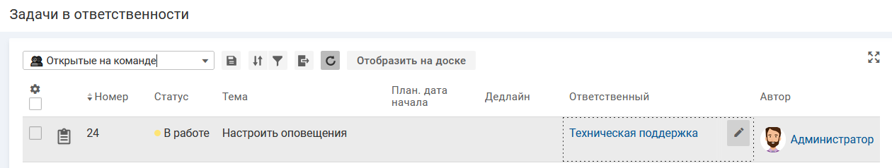В списке задач наведите курсор на ячейку "Ответственный" и нажмите иконку