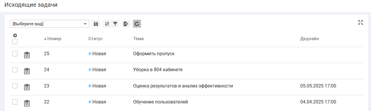 - "Новые на мне" — в списке отображаются задачи в статусе "Новая", находящиеся в персональной ответственности специалиста.
