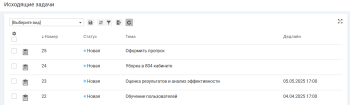 Чтобы посмотреть список задач, в левом меню выберите "Исходящие активности" → "Исходящие задачи".