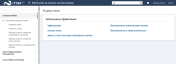 Справочники используются для хранения и классификации данных, используемых при работе в системе. Элементы справочника могут быть выбраны в качестве значения атрибутов типа "Элемент справочника", например, "Графики работ" (serviceTime).