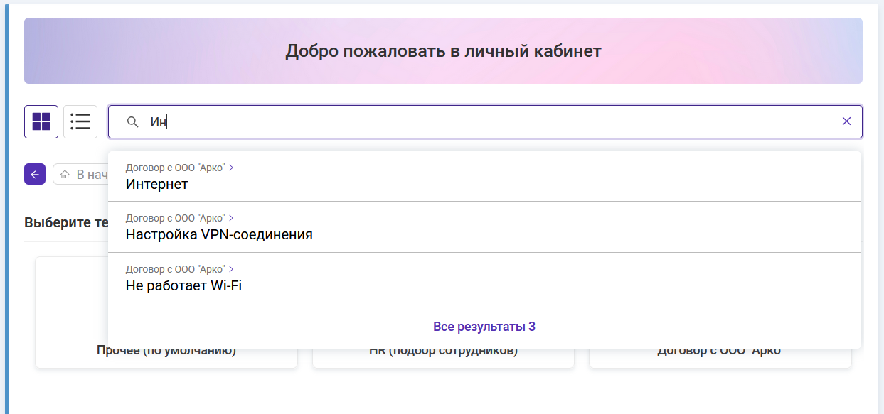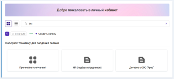 На витрине услуг выберите тематику для создания заявки, нажав на нужную плашку.