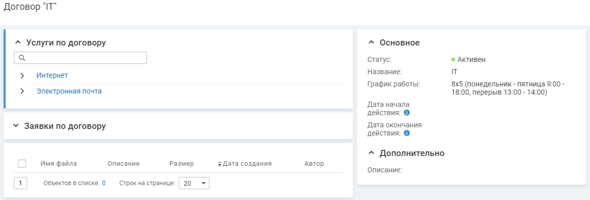 • вкладка "Договоры" — содержит список договоров, в рамках которых пользователю предоставляются услуги.
