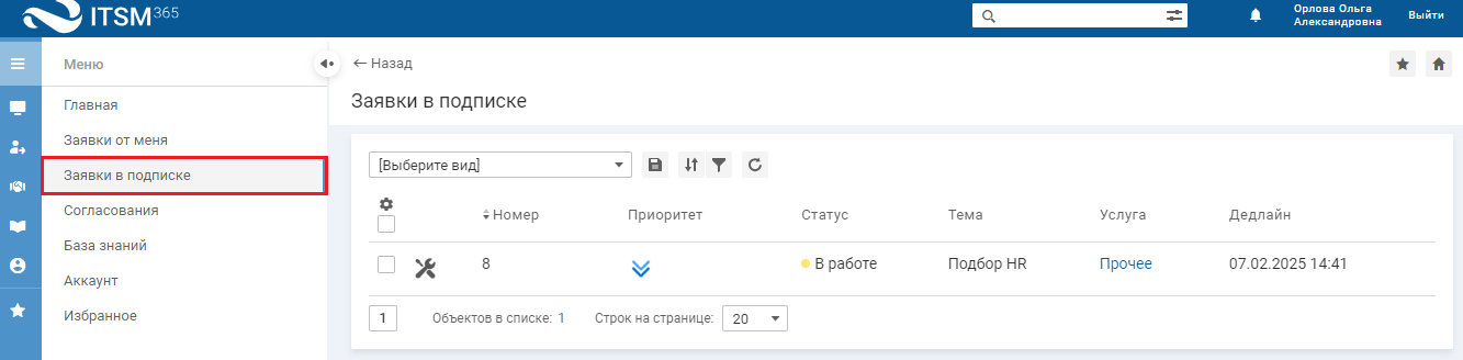 Просмотр заявок в подписке