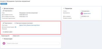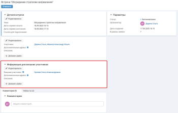 Результаты встречи можно фиксировать в блоке "Комментарии".
