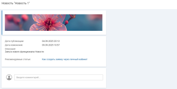 - блок "Комментарии" — отображаются комментарии, добавленные к новости.