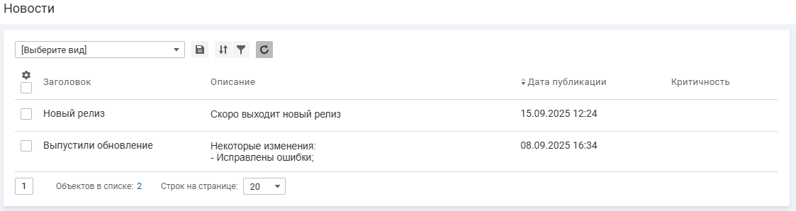 Просмотр новостей доступен пользователям с правами "Получатели новостей".