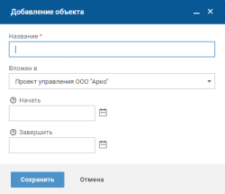 - "Вложен в" — укажите название проекта или этапа проекта, в рамках которого создается этап;