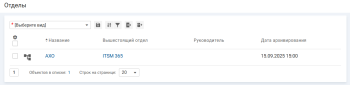 Чтобы создать отдел верхнего уровня, в списке отделов нажмите кнопку "+ Добавить отдел".