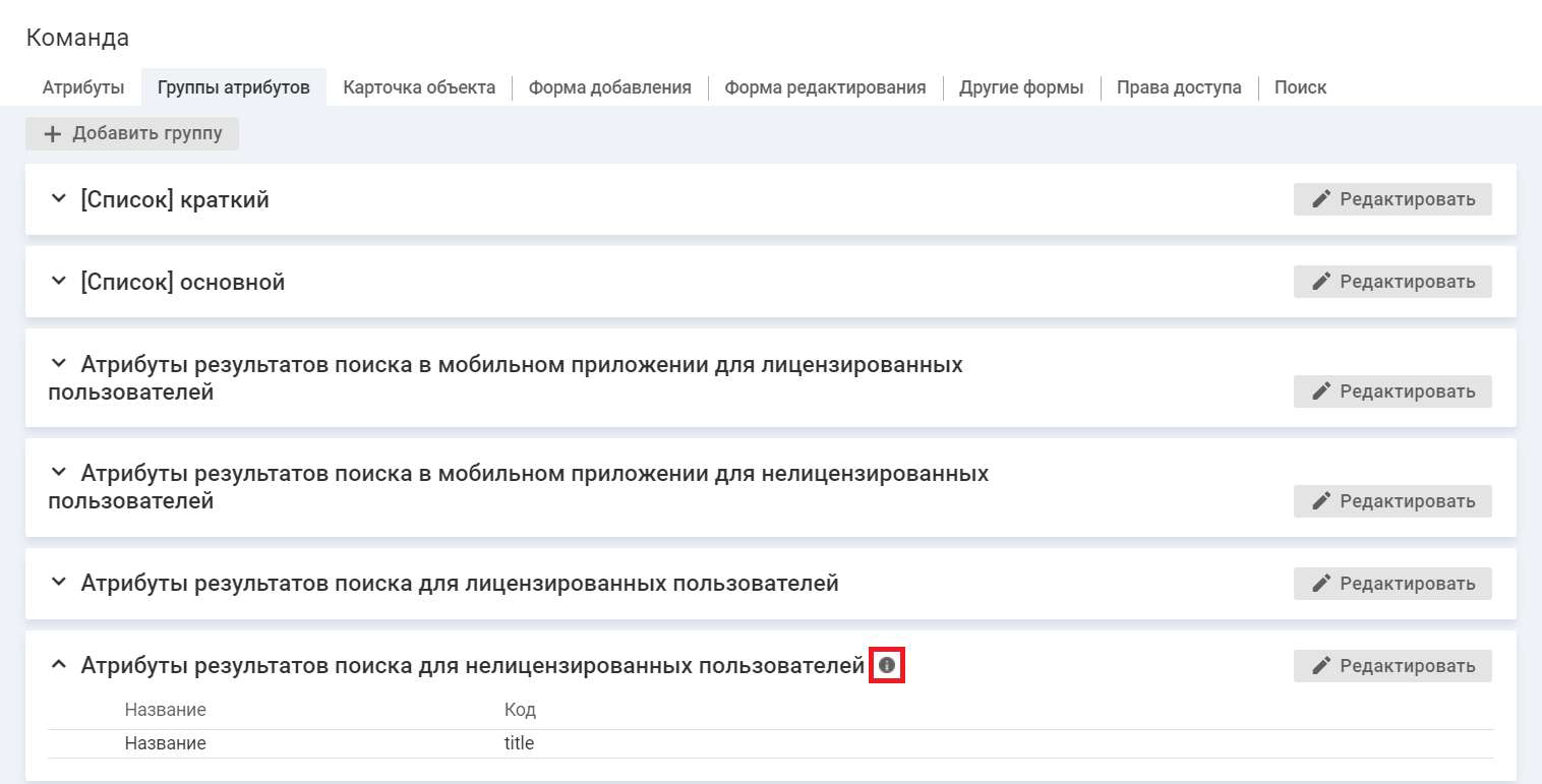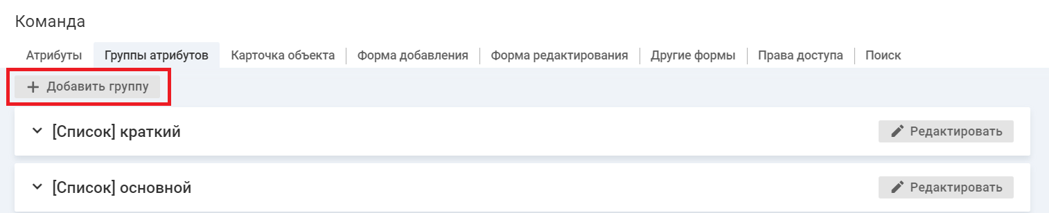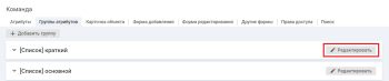 Перейдите на вкладку "Группы атрибутов" и нажмите кнопку Редактировать рядом с названием группы.